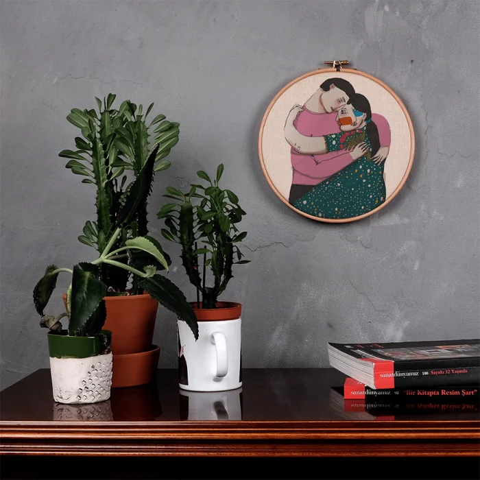 Kasnak üzerine kumaş gerilerek üretilmektedir. Serkan Akyol'un istenilen her çizimi uygulanabilmektedir.