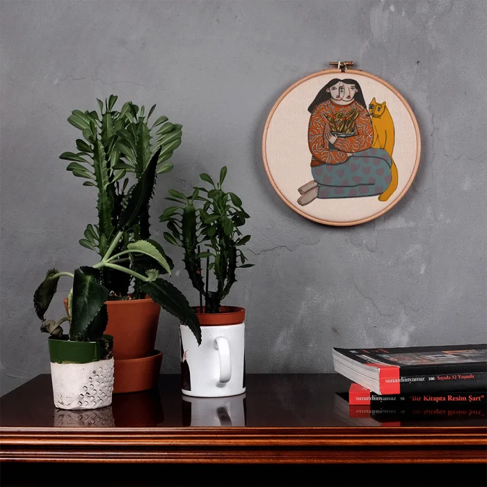 Kasnak üzerine kumaş gerilerek üretilmektedir. Serkan Akyol'un istenilen her çizimi uygulanabilmektedir.