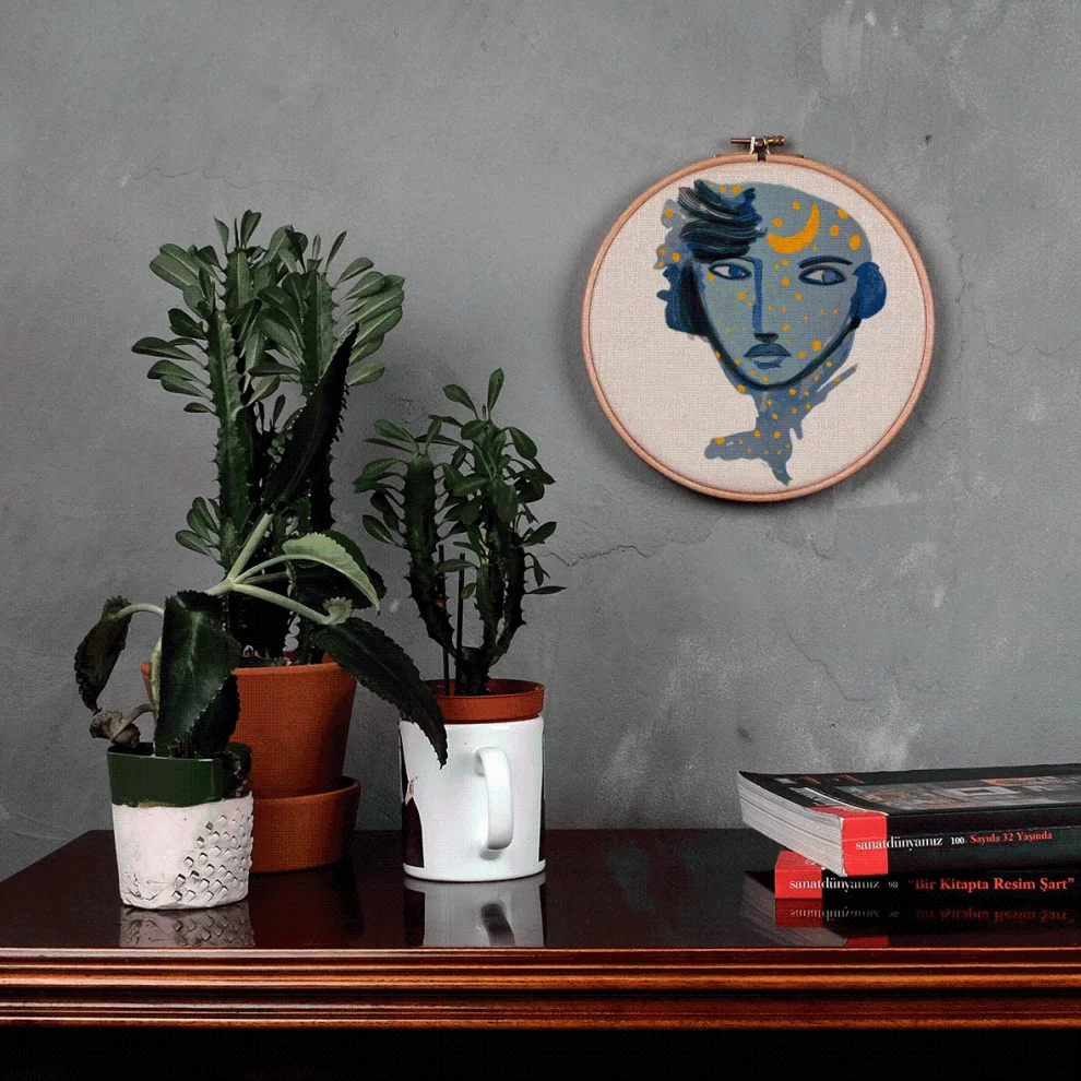 Kasnak üzerine kumaş gerilerek üretilmektedir. Serkan Akyol'un istenilen her çizimi uygulanabilmektedir.