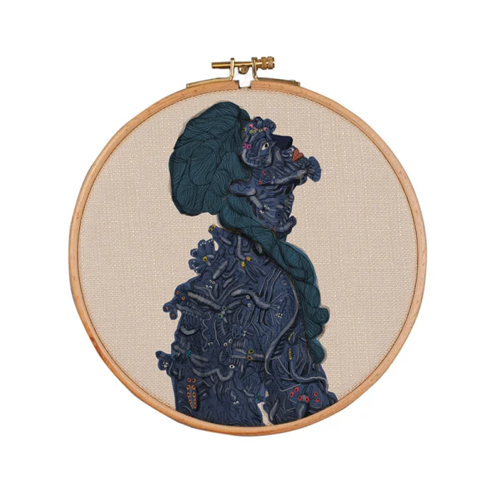 Serkan Akyol'un çizimlerinden keten kumaş üzerine dijital baskı alınarak hazırlanılmaktadır.
