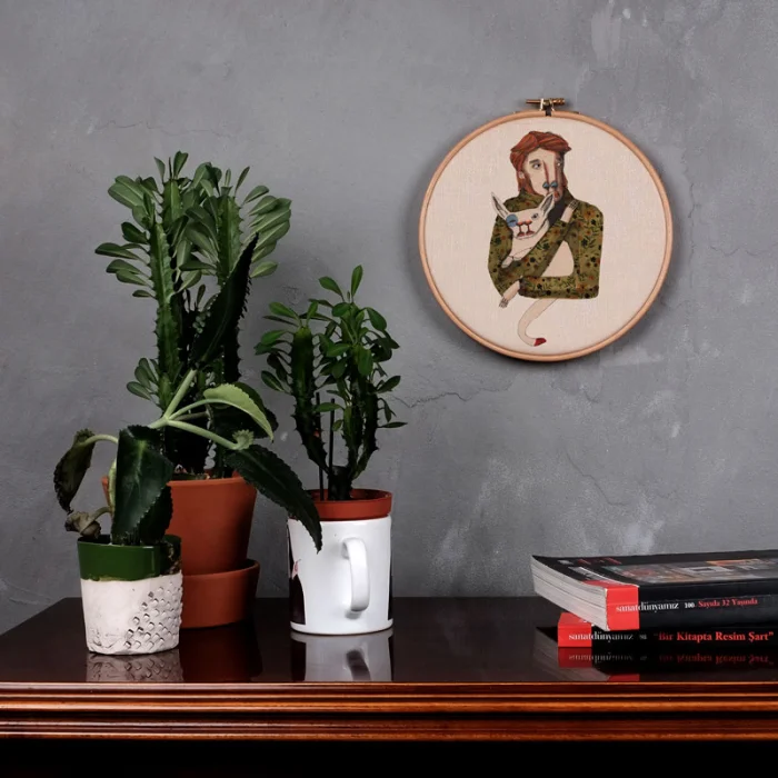 Kasnak üzerine kumaş gerilerek üretilmektedir. Serkan Akyol'un istenilen her çizimi uygulanabilmektedir.