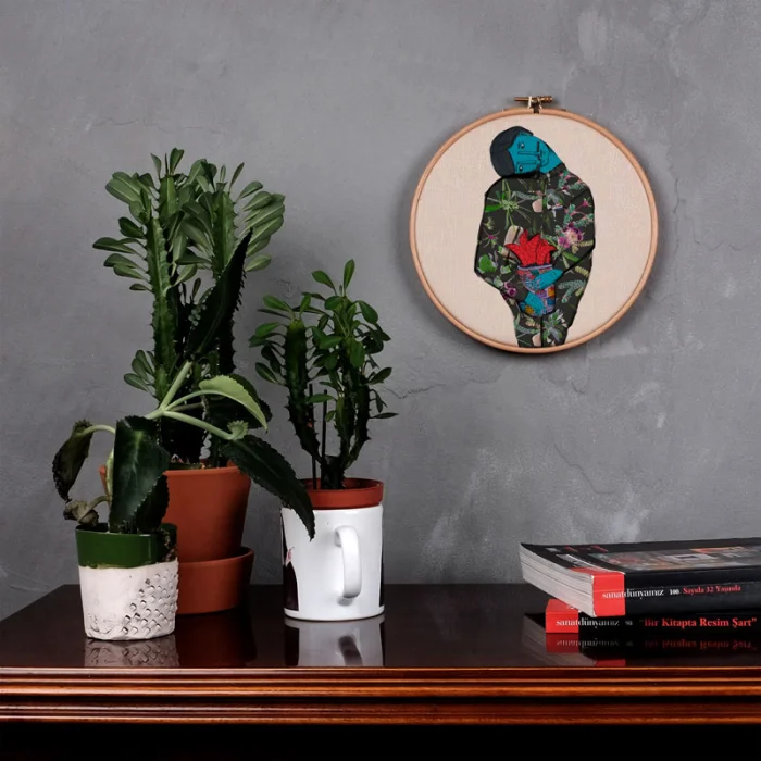 Kasnak üzerine kumaş gerilerek üretilmektedir. Serkan Akyol'un istenilen her çizimi uygulanabilmektedir.