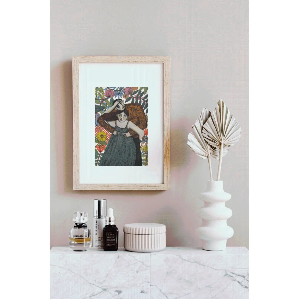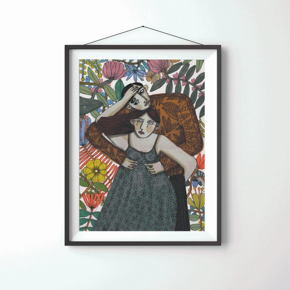 Marker, kuru ve sulu boyalar ile yapılan çizimler, ardından 210g mat Hahnemühle enhanced kağıdına giclée kalitesinde baskı alınmıştır. Bu teknik; sanatsal baskı orjinal renklere %98 oranında yakın renk yakalayabilmekte, bu renkler yaklaşık 200 yıl sağlıklı bir sekilde korunmaktadır. *Çerçevesiz rulo ile gönderilecektir. *Baskı boyutu 21x30 'dur. *Çerçeve payları extradan verilmiştir. *Ölçülendirilmemiştir.