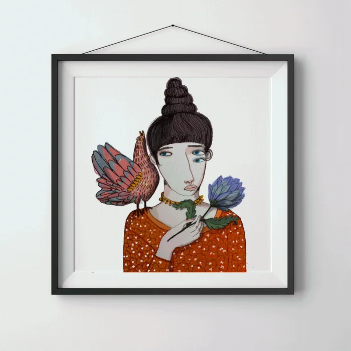 Ürün Kodu: Kendine kanat çırpan kadın Kare Fine Art Baskı3