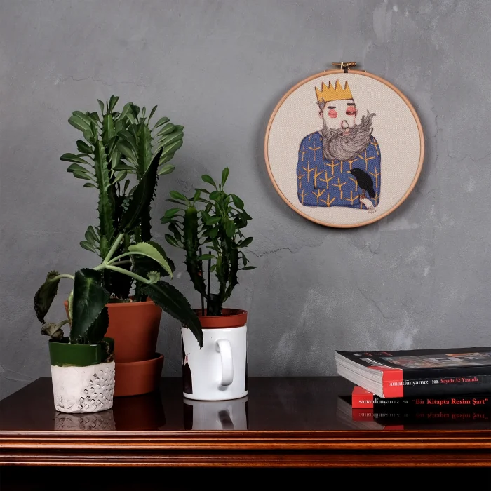 Kasnak üzerine kumaş gerilerek üretilmektedir. Serkan Akyol'un istenilen her çizimi uygulanabilmektedir.