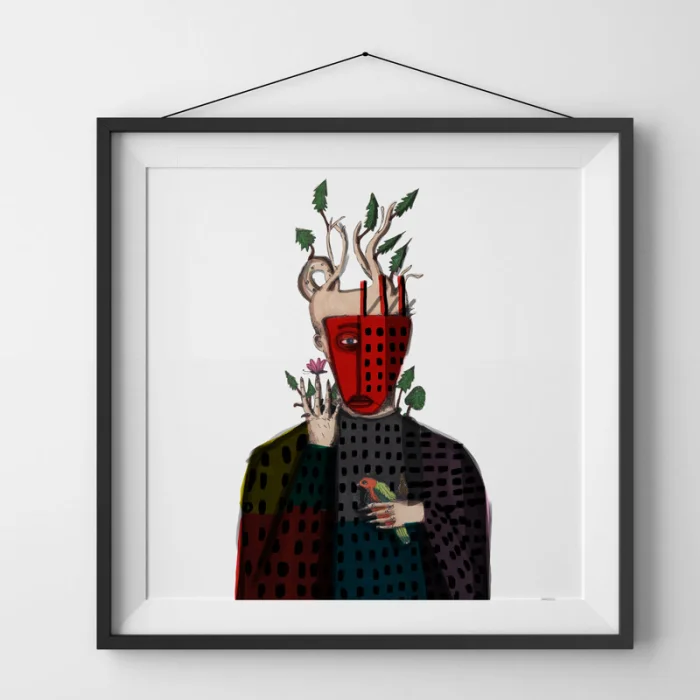 Marker, kuru ve sulu boyalar ile yapılan çizimler, ardından 210g mat Hahnemühle enhanced kağıdına giclée kalitesinde baskı alınmıştır. Bu teknik; sanatsal baskı orjinal renklere %98 oranında yakın renk yakalayabilmekte, bu renkler yaklaşık 200 yıl sağlıklı bir sekilde korunmaktadır. *Çerçevesiz rulo ile gönderilecektir. *Baskı boyutu 33x33 'dür. *Çerçeve payları extradan verilmiştir. *Ölçülendirilmemiştir