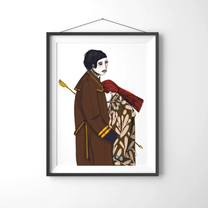 Marker, kuru ve sulu boyalar ile yapılan çizimler, ardından 210g mat Hahnemühle enhanced kağıdına giclée kalitesinde baskı alınmıştır. Bu teknik; sanatsal baskı orjinal renklere %98 oranında yakın renk yakalayabilmekte, bu renkler yaklaşık 200 yıl sağlıklı bir sekilde korunmaktadır. *Çerçevesiz rulo ile gönderilecektir. *Baskı boyutu 33x48 'dir. *Çerçeve payları extradan verilmiştir. *Ölçülendirilmemiştir.