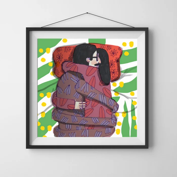 Marker, kuru ve sulu boyalar ile yapılan çizimler, ardından 210g mat Hahnemühle enhanced kağıdına giclée kalitesinde baskı alınmıştır. Bu teknik; sanatsal baskı orjinal renklere %98 oranında yakın renk yakalayabilmekte, bu renkler yaklaşık 200 yıl sağlıklı bir sekilde korunmaktadır. *Çerçevesiz rulo ile gönderilecektir. *Baskı boyutu 33x33 'dür. *Çerçeve payları extradan verilmiştir. *Ölçülendirilmemiştir