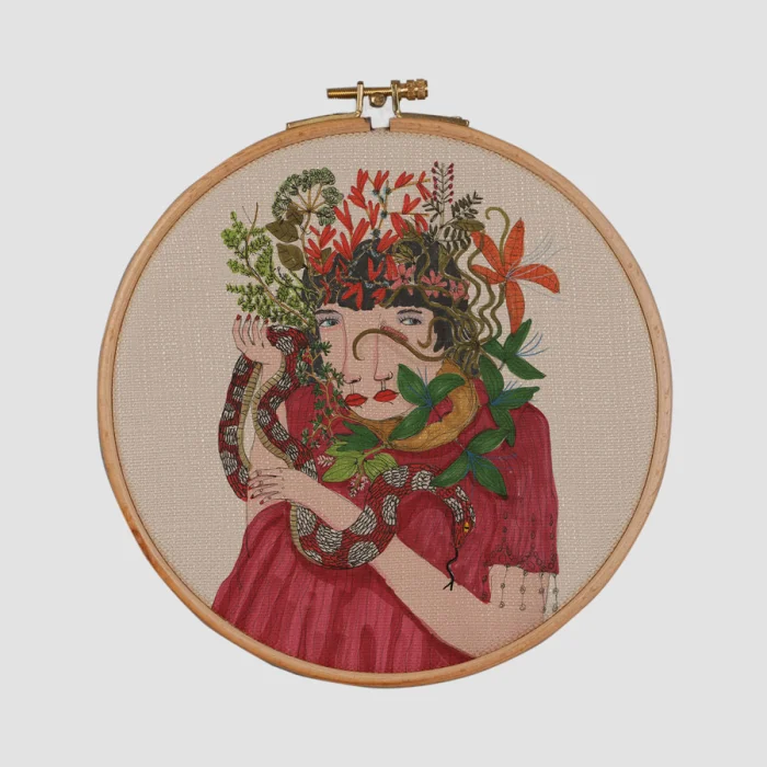 Kasnak üzerine kumaş gerilerek üretilmektedir. Serkan Akyol'un istenilen her çizimi uygulanabilmektedir.