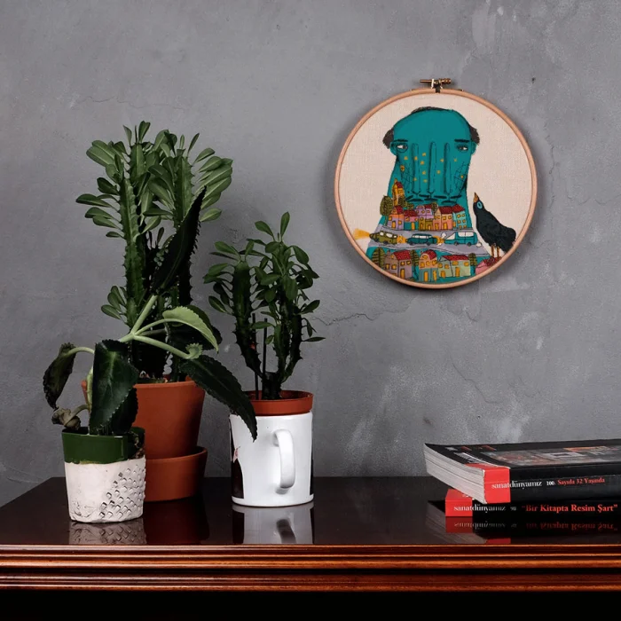 Kasnak üzerine kumaş gerilerek üretilmektedir. Serkan Akyol'un istenilen her çizimi uygulanabilmektedir.