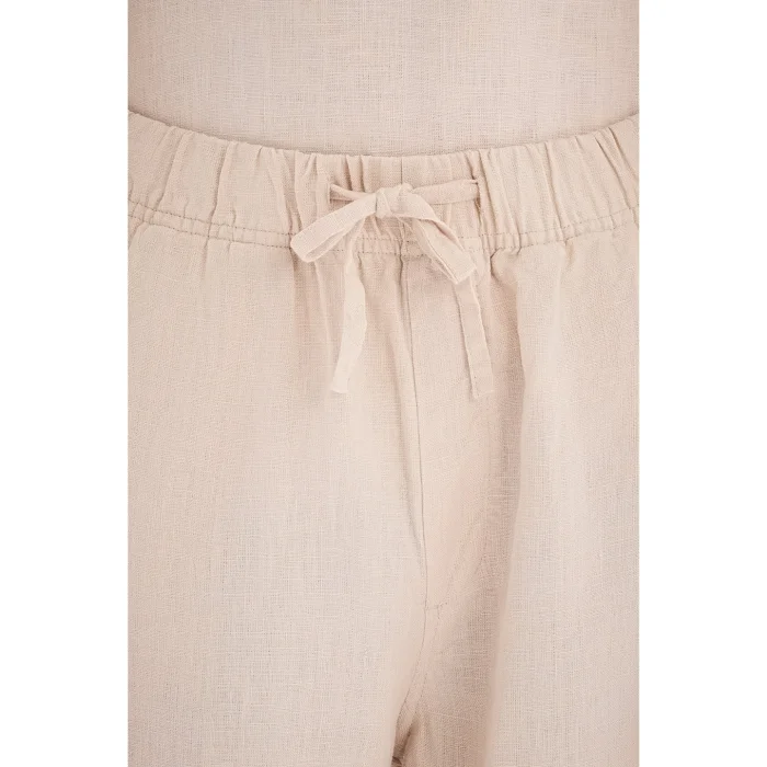 Ürün: %100 Keten Beli Lastikli Bağcıklı Fitted Bilek Boy Pantolon