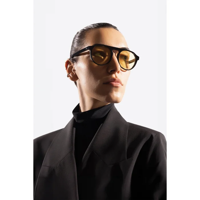 Sarı Camlı Siyah Çerçeveli Asetat CR-39 UV 400 Unisex Güneş Gözlüğü