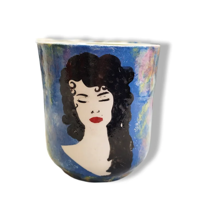 Seramik, el yapımı, el boyaması, kadın temalı kupa, mug.