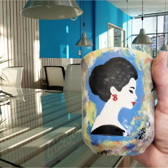 Seramik, el yapımı, el boyaması, kadın temalı kupa, mug.