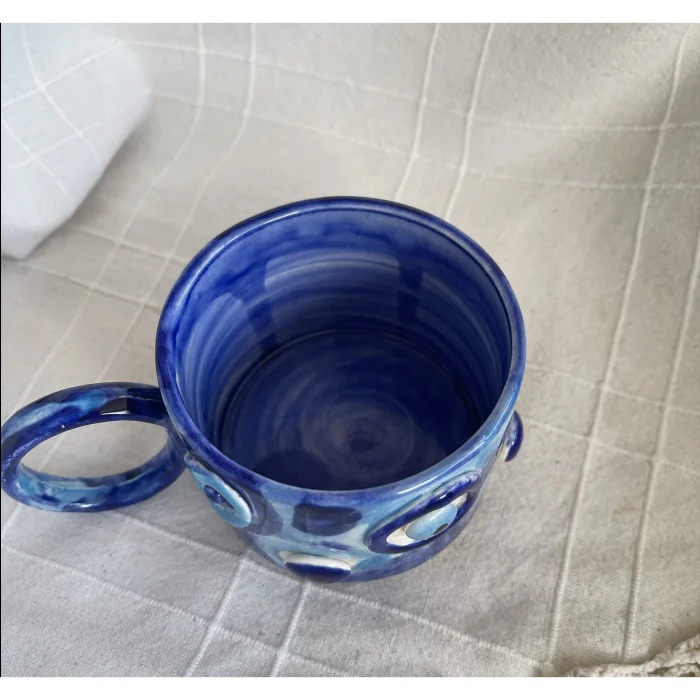 Ürün Kodu: Koyu lacivert nazar boncuklu duble Türk kahvesi büyük yuvarlak kulplu