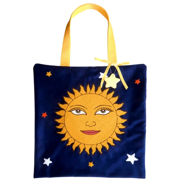 Lacivert kadife kumaş üzeri güneş ve yıldızlar punch nakış.