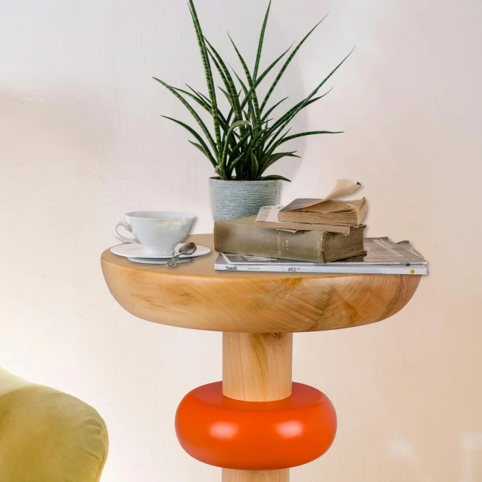 İşlev: Sehpa Tasarım: Sodd Design Malzeme: Masif ıhlamur ağacı, Lake boya Renkler: Turuncu-Ral 2004 - Ral 2008 NOT: Ürün renkleri telefon ve bilgisayar ekranlarından farklılık gösterebilir. Renkleri uluslararası renk kartelası olan Ral Kartelasından kontrol edebilirsiniz. NOT2: Masif ıhlamur ağacının farklı bölümlerinden kesilen ağaçlar her ürünü farklı ve benzersiz yapmaktadır. Doğal doku ve renklerde farklılık olmaktadır.
