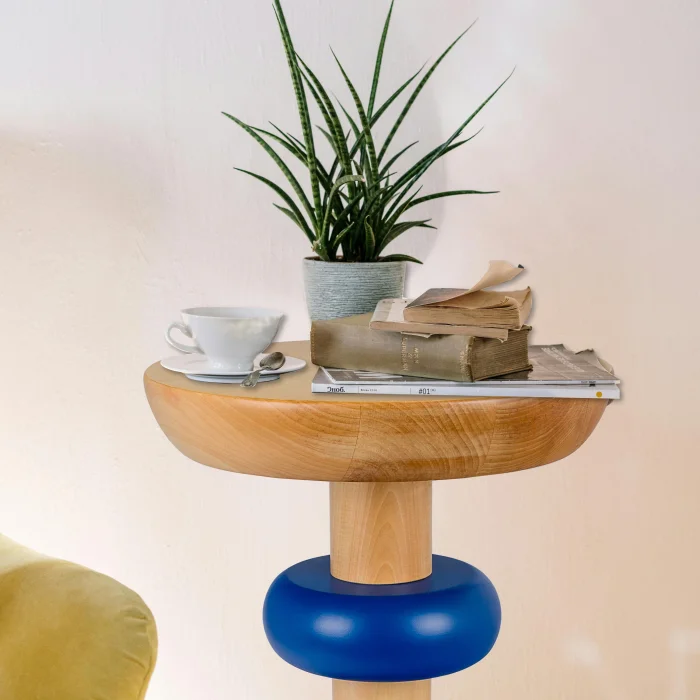 İşlev: Sehpa Tasarım: Sodd Design Malzeme: Masif ıhlamur ağacı, Lake boya Renkler: Mavi-Ral 5005 - Ral 5015 NOT: Ürün renkleri telefon ve bilgisayar ekranlarından farklılık gösterebilir. Renkleri uluslararası renk kartelası olan Ral Kartelasından kontrol edebilirsiniz. NOT2: Masif ıhlamur ağacının farklı bölümlerinden kesilen ağaçlar her ürünü farklı ve benzersiz yapmaktadır. Doğal doku ve renklerde farklılık olmaktadır.