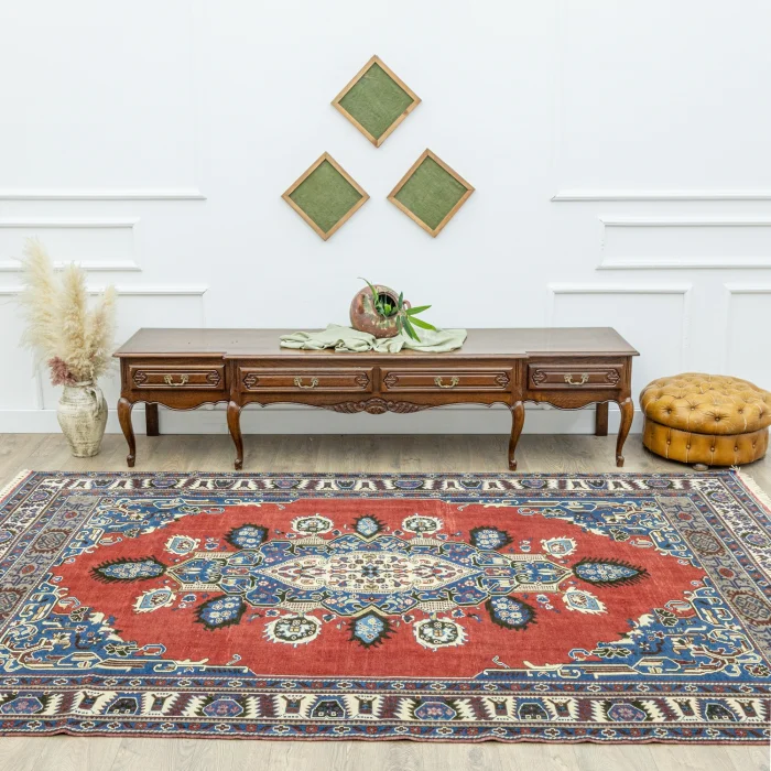 Soho Antiq el dokuma halı ve kilimleri, yaşam alanlarınıza nefes katmak için tasarlanmıştır. Bu zarif el dokuma halı, özenle seçilmiş yüksek kaliteli yün ipliklerinin ustalıkla bir araya getirilmesiyle oluşturulmuştur. Geleneksel el dokuma teknikleri kullanılarak üretilen halı, evinize sıcaklık ve zarafet katmak amacıyla özel olarak tasarlanmıştır. Renk paleti, doğanın yumuşak tonlarından ilham alınarak oluşturulmuş olup, mavi, gri ve kırmızı renklerinin uyumuyla dikkat çekerken halı içerisinde bulunan diğer renkler ile uyumu yakalamaktadır. Halı, deneyimli el sanatçıları tarafından özenle dokunmuş ve Anadolu yöresine özgü geleneksel tekniklerle 1970'lerde üretilmiştir, bu da halıya kültürel bir derinlik katmaktadır. Halının ebatı 200x307 cm olarak ölçülmüştür ve bu ölçü, halının farklı yaşam alanlarına kolaylıkla uyum sağlamasını sağlar. Halının kalınlığı ise 1 - 3 cm arasındadır. Estetik değerinin ötesinde, bu el dokuma halı, evinize özgünlük ve geleneksel bir his katma konusunda öne çıkmaktadır.