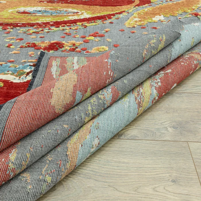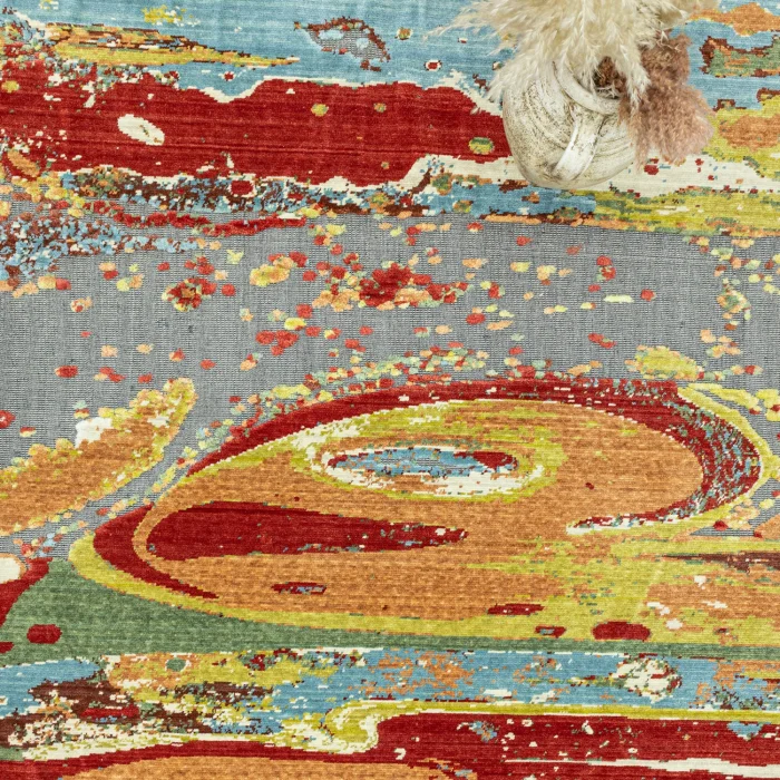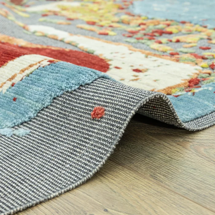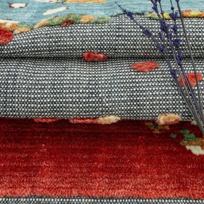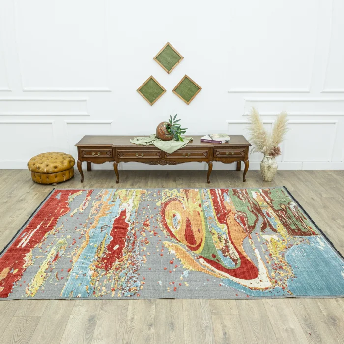 Özel tasarım modern halı modeli, Ege bölgesinde, deneyimli ustalar tarafından kara tezgâh dokuma tekniğiyle üretilmiştir. Bu üretim yöntemi, halıya hem modern hem de soyut bir karakter kazandırmaktadır.