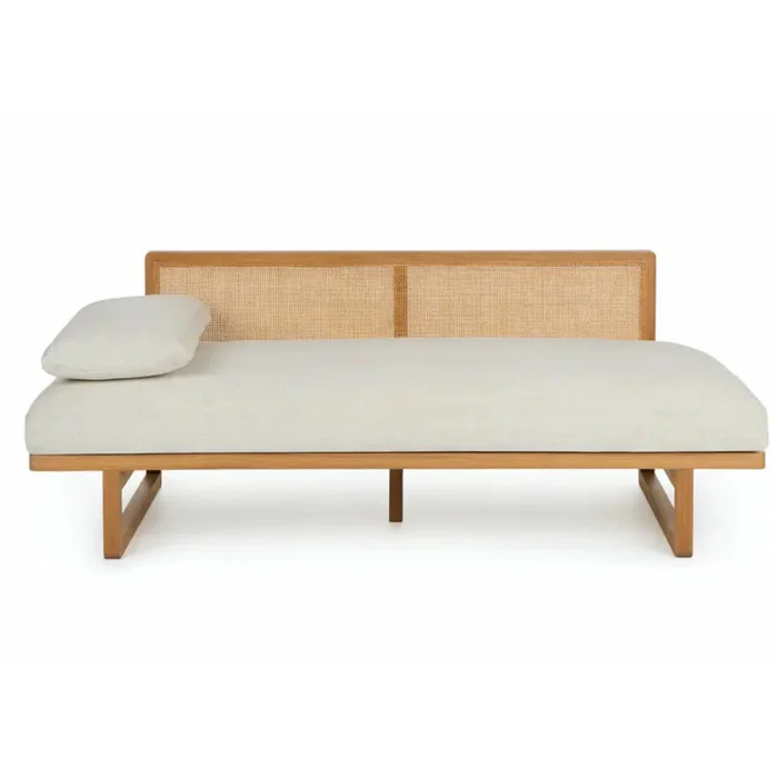 Ürünün iskeleti doğal gürgen ağacıdır. Sırt kısmında doğal hazeran kullanışmıştır. Kumaş olarak beyaz keten tercih edilmiştir. Oturum kısmında sünger ve silikon, yastık da dolgu malzemesi olarak silikon kullanılmıştır. 190*80*73 cm ölçülerindedir.