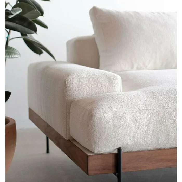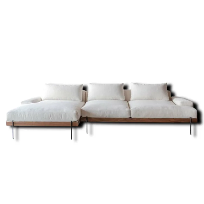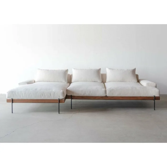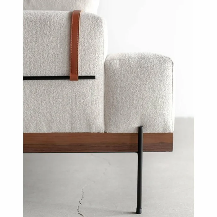 Ürünün iskeleti doğal gürgen ağacıdır. Ayakları siyah fırın boyalı metaldir. Kumaş olarak beyaz keten kullanılmıştır. Oturum ve sırt minderlerinin kılıfı çıkarılabilir. Oturum da sünger ve silikon dolgu kullanılmıştır. Sırt minderlerinin dolgu malzemesi silikondur. Ürünün arkasında kullanılan askılar gerçek deridir. Ürünün genişliği 300 cm, sırt yüksekliği ortalama 80 cm'dir. Uzanmalı köşe dinlenme bölümünün derinliği 130 cm.