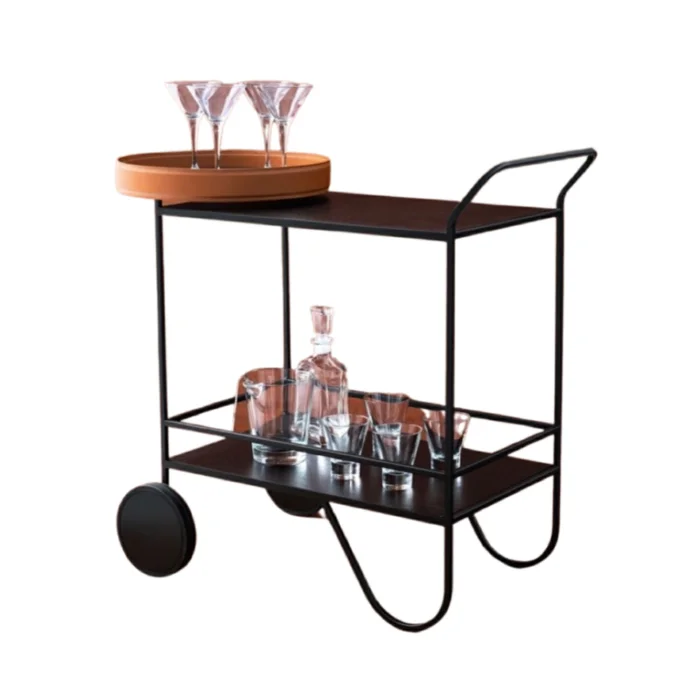 Ürün fırın boyalı metalden üretilmiştir. Yuvarlak Ayakları ahşaptır. 45x65x85 cm boyutlarındadır. Ürüne deri tepsi dahil değildir.