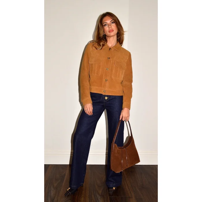 Ürün: Tan Suede Heart Button Jacket