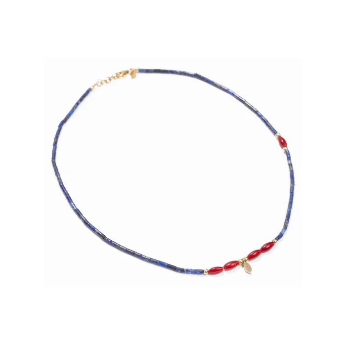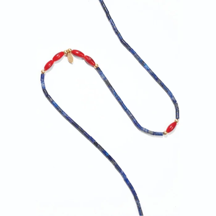 925 Gümüş Üzeri 14k Mikron Altın Kaplama. Lapis Lazuli, Mercan. Gümüş Ağırlık : 1,20 g. Uzunluk : 42 cm. Ürün sertifikalıdır.