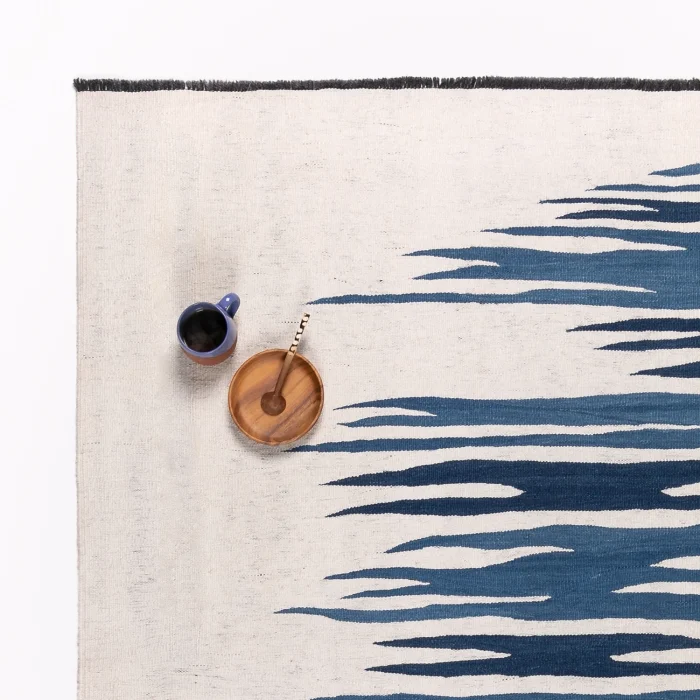 Anadolulu dokuyucular tarafından elle dokunmuştur. El yapımı oluşu her kilime biricik ve kendine özgü karakterini verir. Doğal kök boyalarla renklendirilmiş Anadolu yünü kullanılmıştır. Kilimlerimiz el dokuması olduğu için kilimden kilime ufak renk, boyut ve şekil farklılıkları olabilir. Tasarımcı: Fulden Topaloğlu