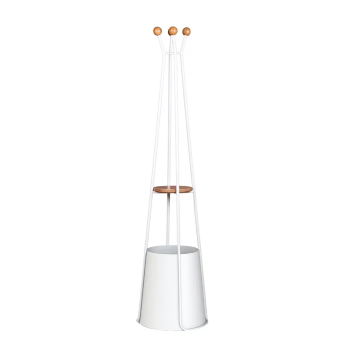 Askılığın ortasındaki ahşap tabla, üzerinizden ceketinizi ya da montunuzu çıkarırken elinizdeki objeleri bırakabileceğiniz bir alan olarak görev yapıyor. Bu ürün ahşap ve metal zanaatkarları tarafından elle üretilmiştir. Tabla: Huş kontrplak üzeri meşe kaplama. Ayaklar: Büküm metal boru üzeri elektrostatik boya. Tasarımcı: Fulden Topaloğlu