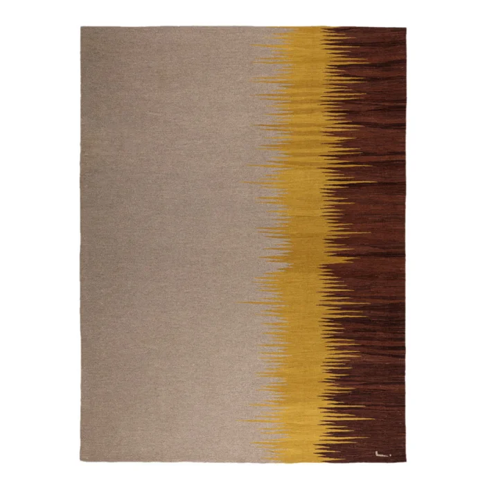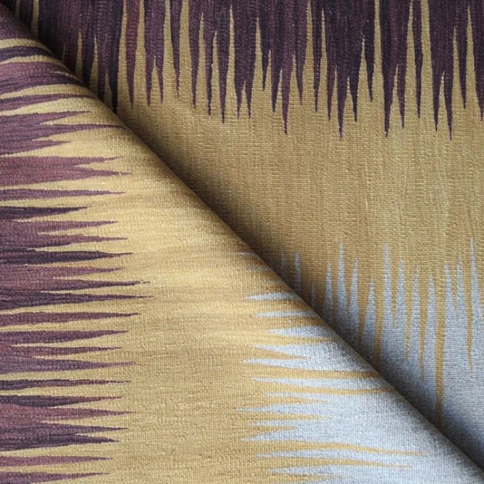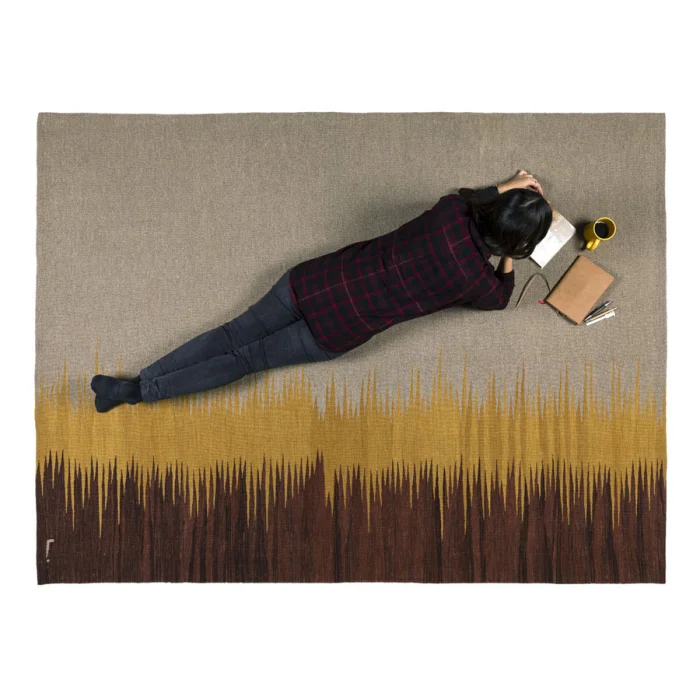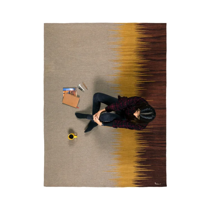 Anadolulu dokuyucular tarafından elle dokunmuştur. El yapımı oluşu her kilime biricik ve kendine özgü karakterini verir. Doğal kök boyalarla renklendirilmiş Anadolu yünü kullanılmıştır. Kilimlerimiz el dokuması olduğu için kilimden kilime ufak renk, boyut ve şekil farklılıkları olabilir. Tasarımcı: Fulden Topaloğlu