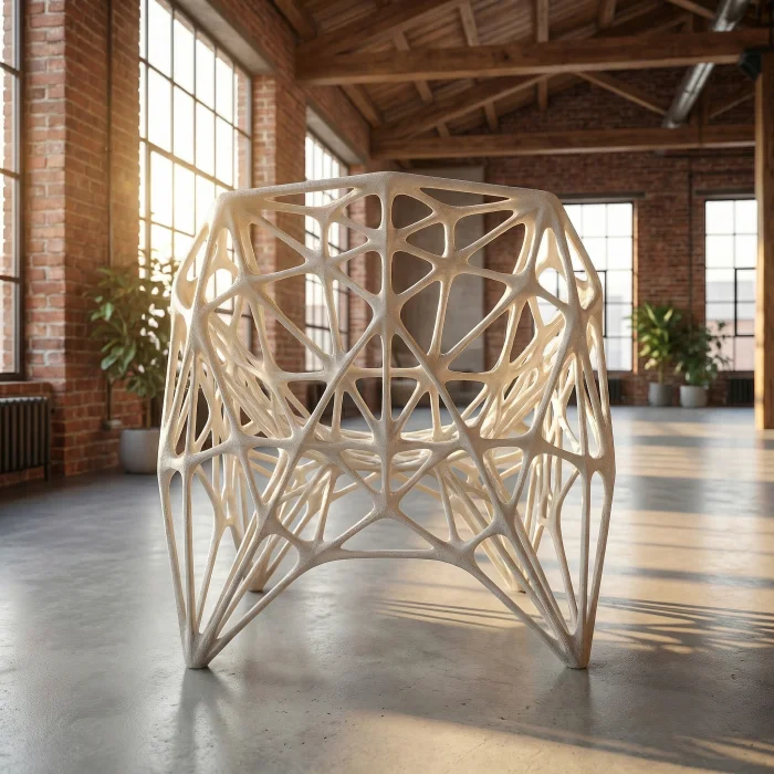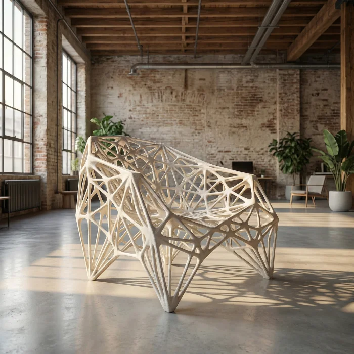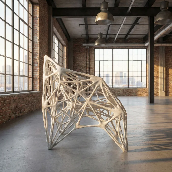 3 Boyutlu yazıcı ile üretilen Aether Berjer tek parça olarak oluşturulduktan sonra pürüzsüzleştirilerek boyanıp kullanıma hazır hale gelir.