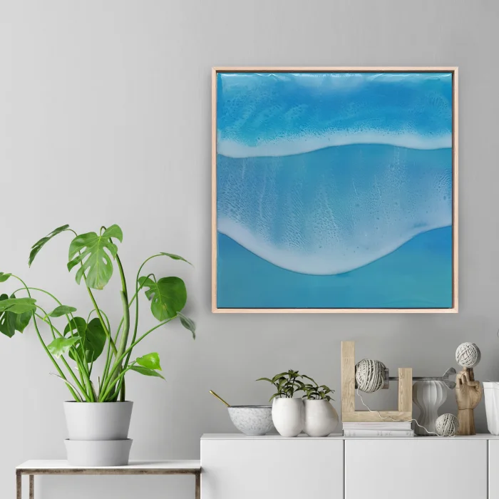 Ahşap zemin üzerine akrilik boyama, üç katmanlı reçine dalgası. Çerçeve dahildir. Her parça stüdyomuzda el yapımı üretilmektedir. Reçine çalışılması çok eğlenceli ama bir o kadar da zor bir malzeme olduğu için her parça kendi karakterini geliştirmektedir. Bu yüzden hiçbir çalışma bir diğerinin benzeri olmaz. Dolayısıyla ürünlerimizden satın aldığınızda sadece size özel bir çalışma almış olursunuz. Doğrudan güneş almayan bir yerde sergilenmesi tavsiye edilir.