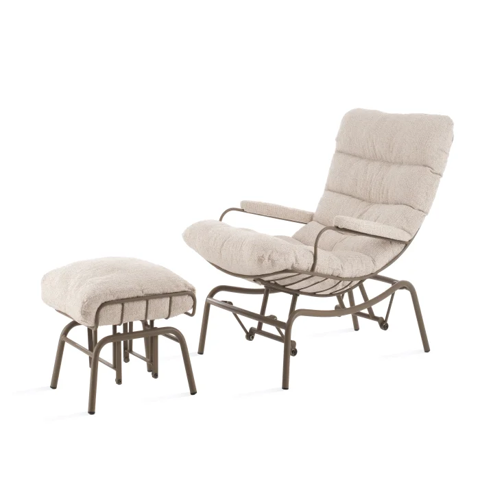 Ürün Ölçüleri: Berjer: 75x102 cm h:100 cm Puf: 47x45 cm h:46 cm Ürün Özellikleri: Metal aksam, dolu demir ve profilden imal edilmiştir. Elektrostatik toz boyalıdır. Kumaş, suni deridir. Kolayca temizlenebilir. Döşeme kısmında, oturum konforunu sağlamak için %70 oranında boncuk silikon, çökmeye karşı dayanımı sağlamak için ise %30 oranında kırpıntı sünger kullanılmıştır.
