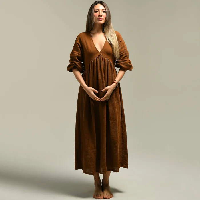 Ürün: Pamuklu Bohem V Yakalı Uzun Kollu Uzun Elbise