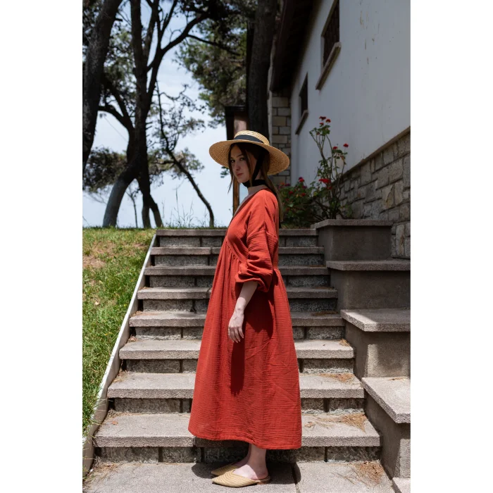 Ürün: Pamuklu Bohem V Yakalı Uzun Kollu Uzun Elbise