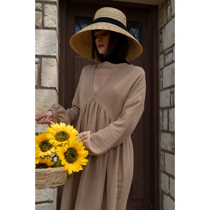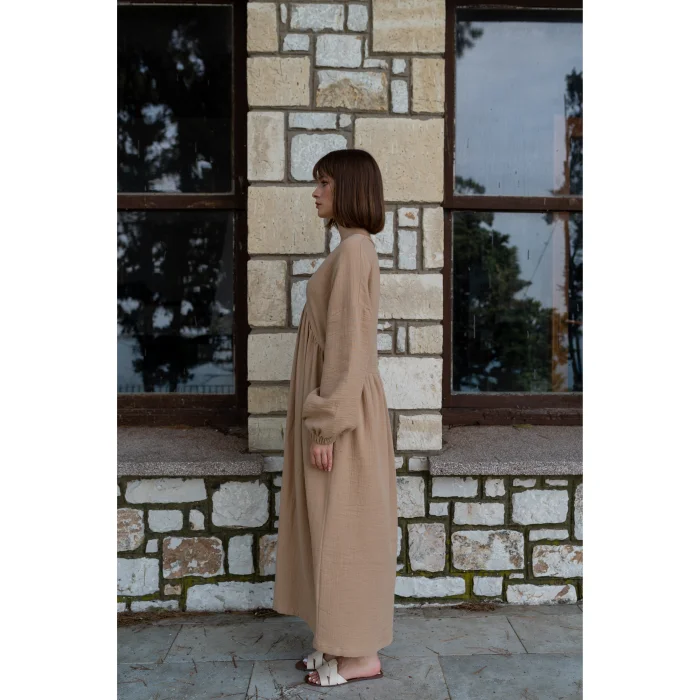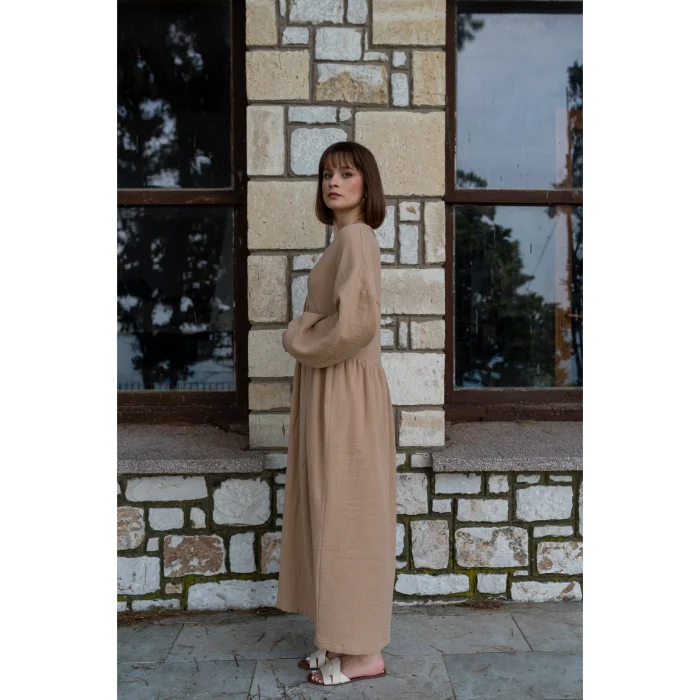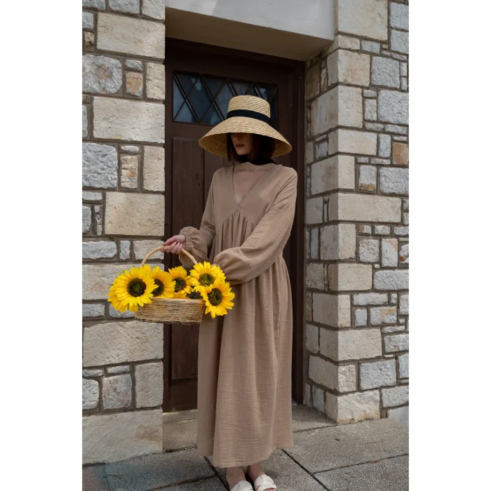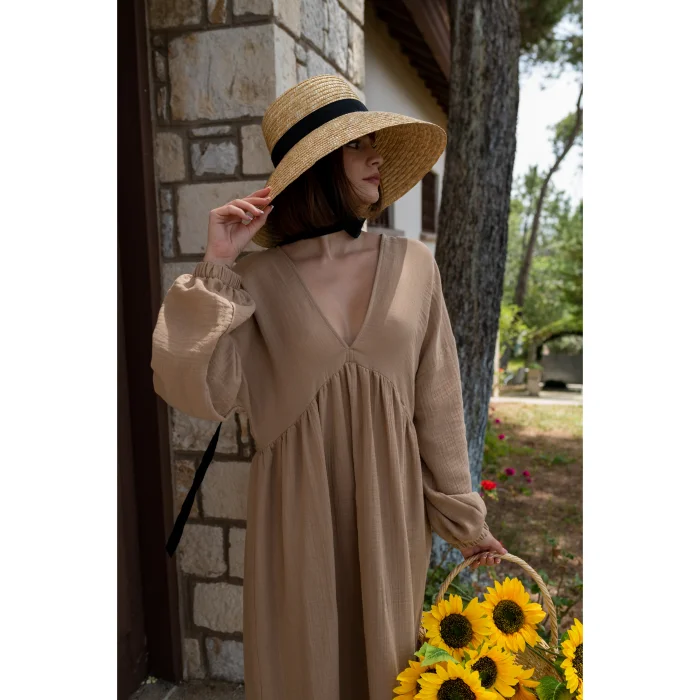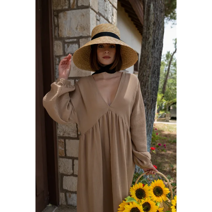Ürün: Pamuklu Bohem V Yakalı Uzun Kollu Uzun Elbise