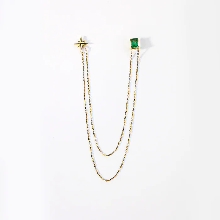 Ürün: Zümrüt Ve Kuzey Yıldızı 14 Ayar Yaka İğnesi