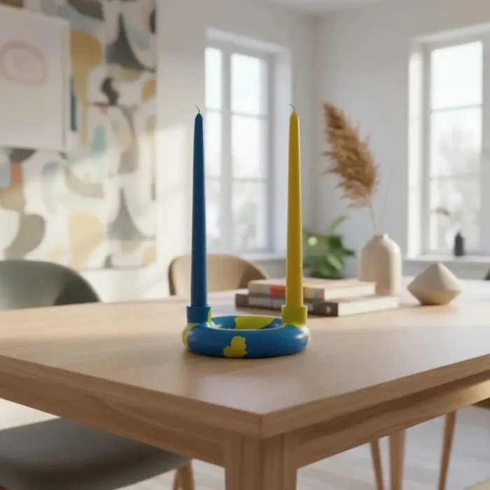 2 cm çapındaki mumlar için ideal olarak tasarlanan bu şık ürün, sadece fonksiyonel değil, aynı zamanda görsel olarak da dikkat çekiyor. Yemek masasında hoş bir atmosfer yaratabilir, oturma odasında göz alıcı bir odak noktası olabilir ya da çalışma alanınıza renkli bir dokunuş ekleyebilir.