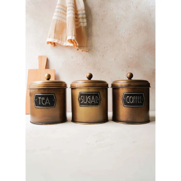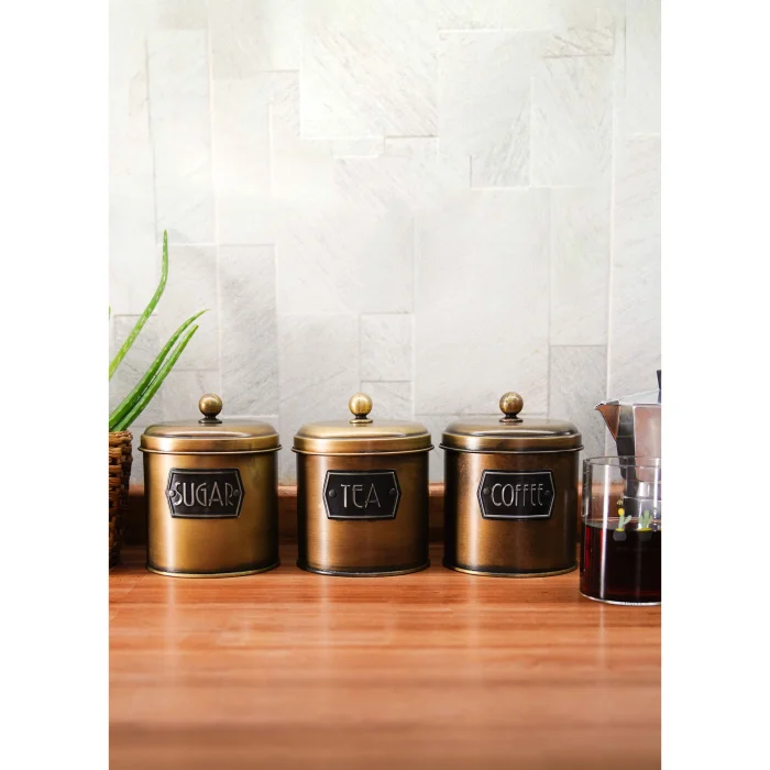 Çay Şeker Kahve Kavanoz 3lü Set 1,7 Lt Gold