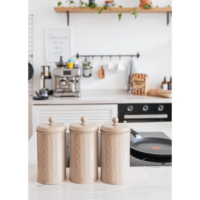 Galvaniz kaplamalı 3'lü kavanoz seti.