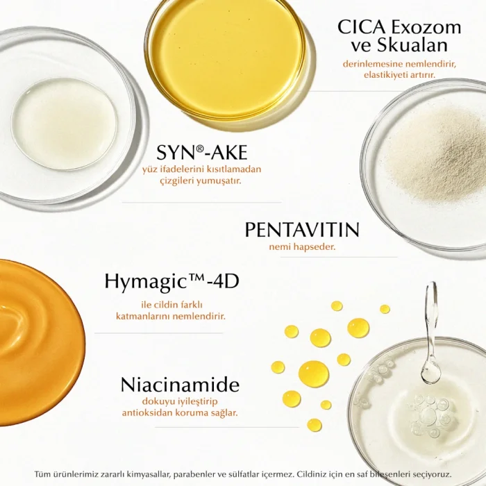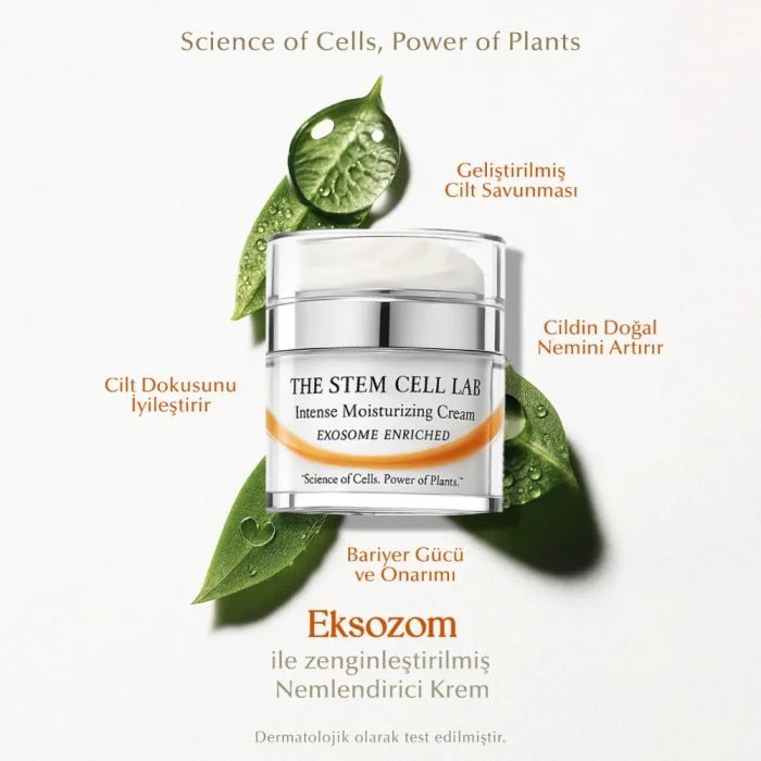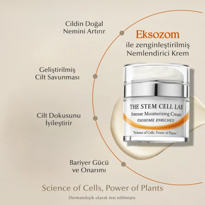 Eksozomun Gücünü Kendi Hücrelerini ile Birleştirin! Ürün Özellikleri: ● Yoğun nemlendirici kremimiz, cildinize derin ve uzun süreli nem sağlar ● Cildinizin taze ve daha parlak görünmesine yardımcı olur ● İleri düzey cilt bakım bilimi ile geliştirilen bu krem, cildin yüzeyinin altında çalışarak cildinizi yeniler ve yumuşak, pürüzsüz, ışıltılı bir görünüm bırakır.; ● Bu lüks formül, gün boyunca sürekli nem sağlayarak cildinizin yumuşak ve esnek kalmasını sağlar.; ● Yağlı bir his bırakmadan cildi besler, dokusunu iyileştirir ve ışıltılı bir görünüm kazandırır, böylece taze, canlı ve enerjik bir cilt görünümünün keyfini çıkarabilirsiniz.; ● Gelişmiş cilt savunması ● Bariyer gücü ve onarımı sağlar ● Cildin doğal nemini artırır ● Cilt dokusunu iyileştirir Nemlendirme Yenilikle Buluşuyor Öne Çıkanlar: ● Eksozom ile Zenginleştirilmiş Nemlendirici Krem .; ● SYN®-AKE yüz ifadelerini kısıtlamadan çizgileri yumuşatır.; ● CICA Exozom ve Skualan derinlemesine nemlendirir, elastikiyeti artırır ve cilt esnekliğini geri kazandırır ● PENTAVITIN nemi hapsederek HymagicTM-4D ile cildin farklı katmanlarını nemlendirir ● Niacinamide dokuyu iyileştirip antioksidan koruma sağlar.; Cilt Bakımının Geleceği The Stem Cell Lab 101 The Stem Cell Lab 101'de, cilt bakımını yeniden formüle etmek için doğanın ve bilimin uyumlu dengesini yakalıyoruz.; Bitki bazlı yeniliklerin faydalarıyla birlikte gelişmiş kök hücre teknolojisinden yararlanan ürünlerimiz, gerçek cilt yenilenmesini kolaylaştırmak için yüzeysel tedavilerin ötesine geçiyor.; Bilimsel mükemmeliyete ve doğal içeriklere olan bağlılığımız sayesinde, hem son derece etkili hem de güvenli cilt bakım ürünleri geliştiriyoruz.; Kök hücre teknolojisini bitki bazlı eksozomun güçlü etkileriyle birleştirerek, ürünlerimiz derin, kalıcı sonuçlar sunmak üzere tasarlanmıştır.; Her formülasyon, her cilt tipinin farklı ihtiyaçlarını karşılamak için özenle hazırlanır, böylece herkes daha sağlıklı ve daha dirençli bir cilt deneyimi yaşayabilir.; Doğa ve teknolojinin kesişimine odaklanan The Stem Cell Lab 101, yenilik ve ilerlemeye kendini adamıştır.; Araştırma odaklı yaklaşımımız, endüstri trendlerinin önünde olmamızı sağlar ve bireysel ihtiyaçlara özel mükemmel cilt bakımı çözümleri sunar.