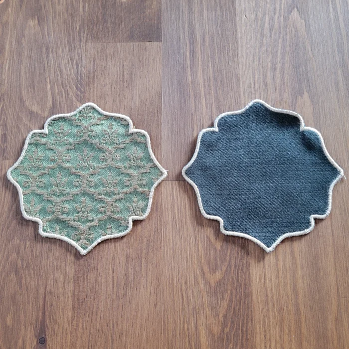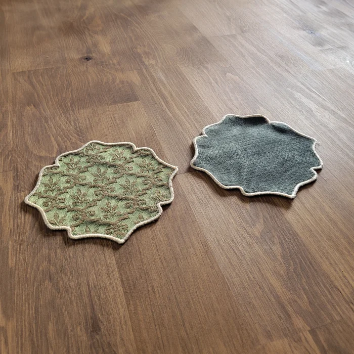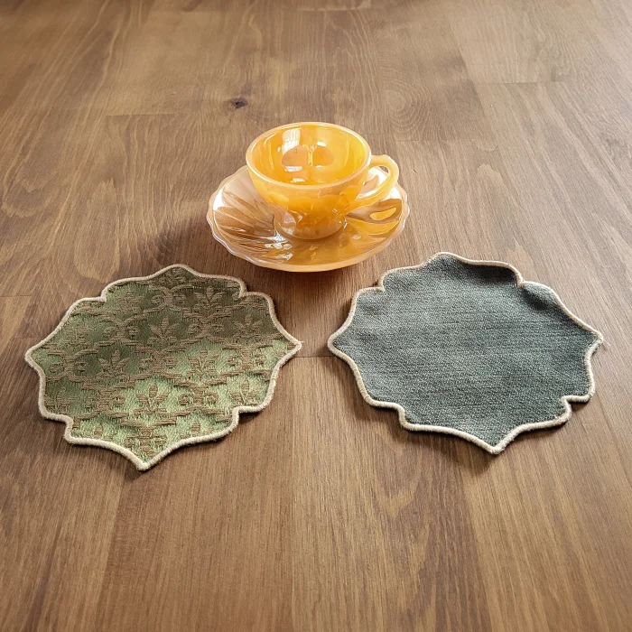 Ürün Özellikleri: Çap: Her biri 14 cm Set: 2 adet bardak altlığı Tasarım: Kumaş üstü nakış işlemeli Malzeme: İthal kumaş Renk: Nakış işlemelerinin zarif tonları Kullanım: Masanızı korurken estetik bir dokunuş katar Özel Avantajlar: Benzersiz Set: Sadece bir adet mevcut, bu yüzden tamamen size özel İthal Kumaş: Yüksek kaliteli ithal kumaş kullanılarak üretilmiştir, hem dayanıklı hem de şık Sanatsal İşçilik: Nakış işçiliğiyle detaylandırılmış, her mekana zarafet katacak bir parça Bu özel bardak altlığı setiyle sofralarınıza sofistike bir dokunuş ekleyin. Sadece bir adet set bulunduğu için, bu nadir parçayı kaçırmayın!