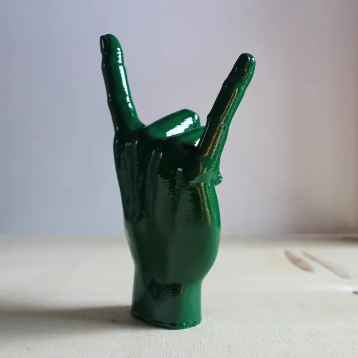 Altın rengiyle dikkat çeken rock işareti tasarımı
