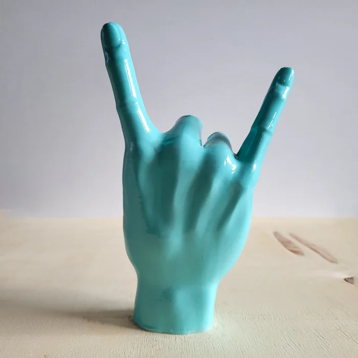 Altın rengiyle dikkat çeken rock işareti tasarımı