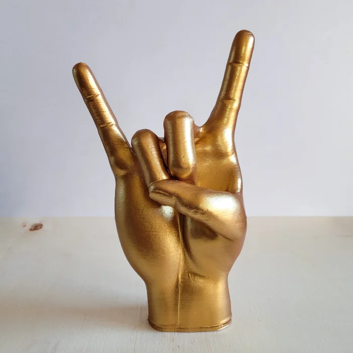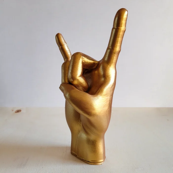 Altın rengiyle dikkat çeken rock işareti tasarımı