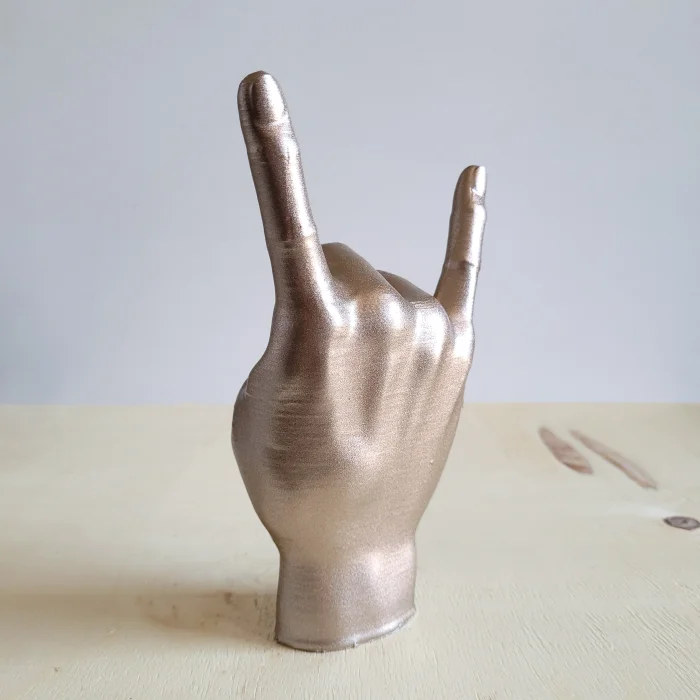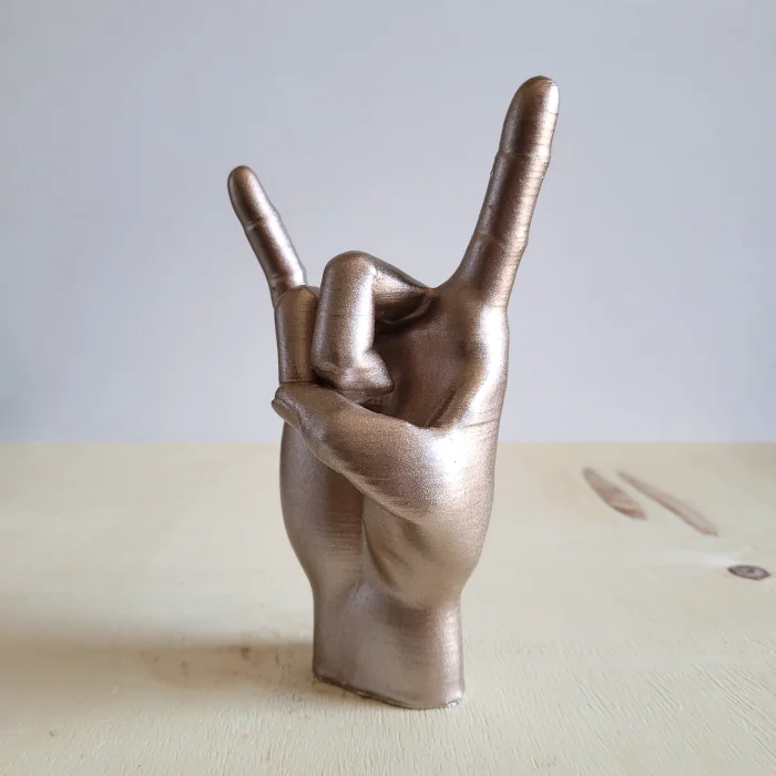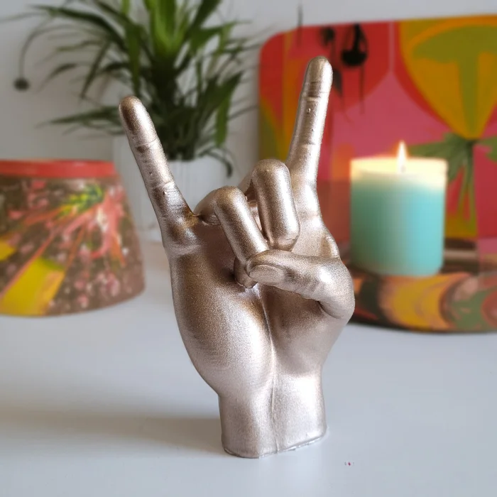 Altın rengiyle dikkat çeken rock işareti tasarımı