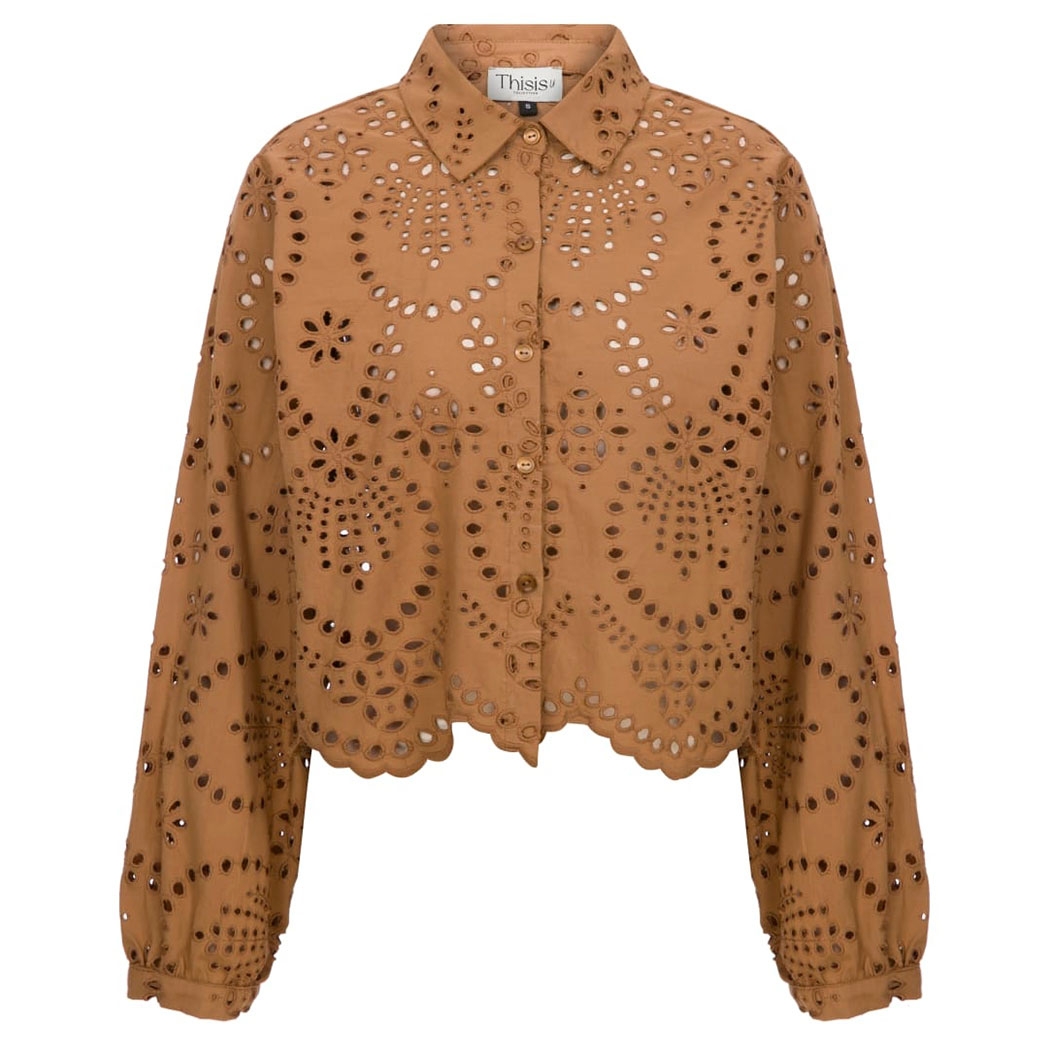 Brode Detaylı, Etek Bölümü Dalga Kesimli, Kahvrengi Gömlek