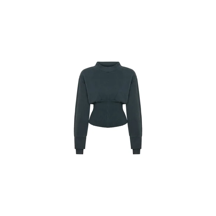 Ürün: Yarım Balıkçı Yaka Lastik Bel Detaylı Pamuklu Sweatshirt